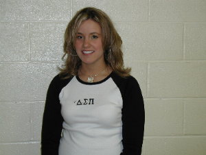 Ladies Long Sleeve baseball T-shirt with the Delta Sigma Pi swoosh on the chest